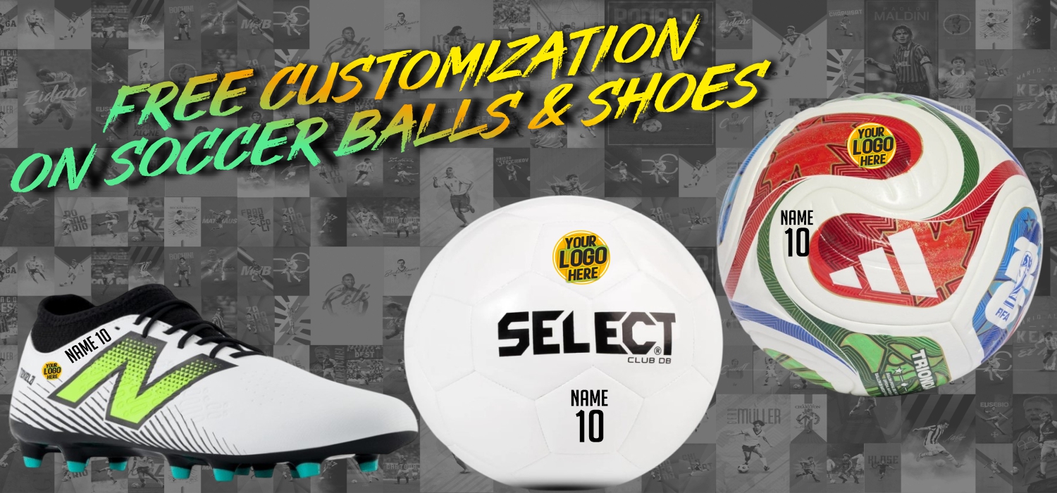 We are the Kings of custom with our ability to print on soccer shoes, soccer ball, soccer jerseys, soccer uniforms, gloves and more! If you need anything personalized please stop by or call 1.888.335.4625 for assistance. Our in house printing will allow us to serve you in the best way possible.