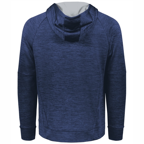 Our Holloway All-Pro Performance Fleece Hoodie is crafted from 6.78-ounce, 100% polyester melange fleece, providing exceptional comfort and insulation. It features raglan sleeves for improved mobility, and a front pouch pocket with an inner mesh cell phone or valuables pocket for convenient storage. The adult sizes of the hoodie include a scuba-shaped 3-piece hood with a contrast color lining and drawcord, adding style and protection. The self-fabric cuffs provide a snug fit, while the open bottom