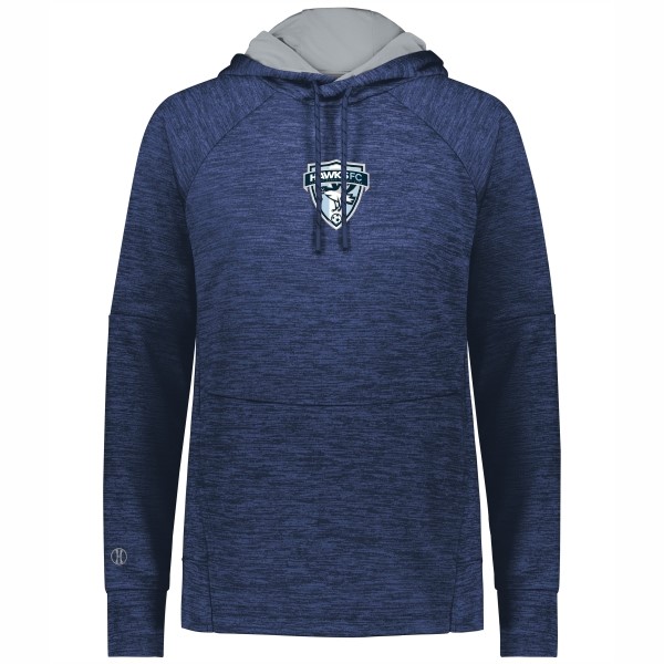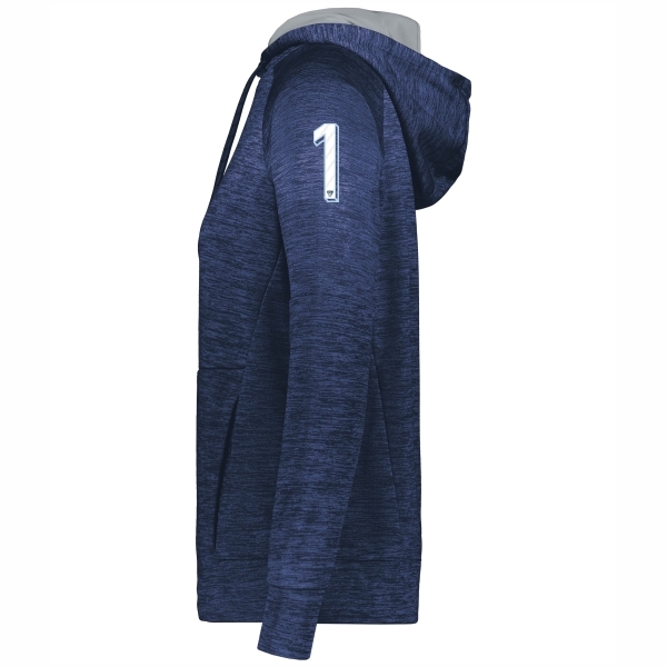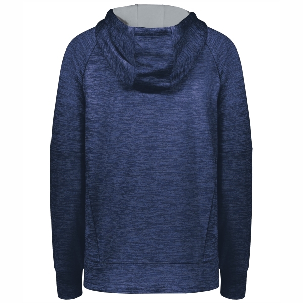 Our Holloway All-Pro Performance Fleece Hoodie is crafted from 6.78-ounce, 100% polyester melange fleece, providing exceptional comfort and insulation. It features raglan sleeves for improved mobility, and a front pouch pocket with an inner mesh cell phone or valuables pocket for convenient storage. The adult sizes of the hoodie include a scuba-shaped 3-piece hood with a contrast color lining and drawcord, adding style and protection. The self-fabric cuffs provide a snug fit, while the open bottom