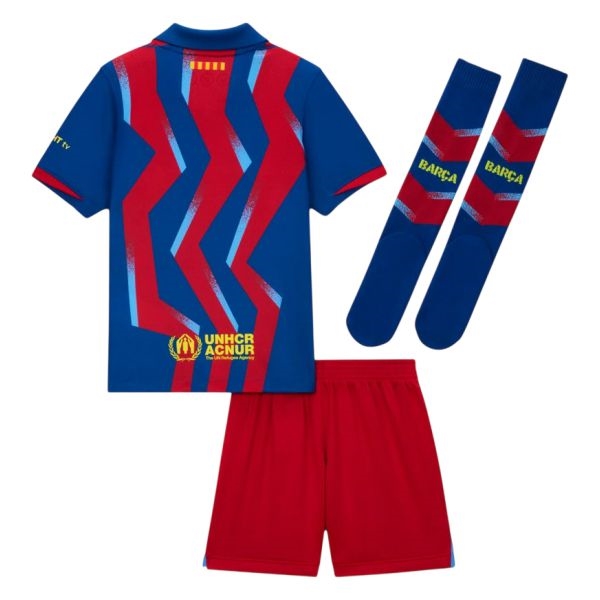 Our Nike Barcelona Fourth Little Kids' Mini Kit 2025-2026 is inspired by what the pros wear, it has a team jersey with matching shorts and socks. Made from lightweight, sweat-wicking fabric, it helps keep young athletes comfortable while they zoom, scurry or play.