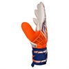 Look down the list of the gloves attributes to see the specific sizing of the product. If a glove runs a "half size small" then move up to the next size. Remember: Goalkeeping gloves should be worn big, as much as 1.5" over the length of your fingers.