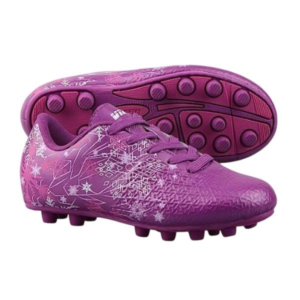 Our Vizari Frost FG JR lets you unleash your potential. Stylish Traction for Young Athletes -Elevate your game with the Frost 3 Firm Ground Soccer Shoes featuring a rubber sole that ensures exceptional traction on firm ground surfaces. The frost-themed synthetic upper not only adds a fashionable flair but also showcases your style on the field. These soccer cleats are designed for both girls and boys, making them the perfect choice for young athletes who want to stand out while performing at their best. The molded rubber in two colors not only enhances the aesthetic appeal but also provides unmatched comfort and stability, allowing you to conquer the field with confidence.