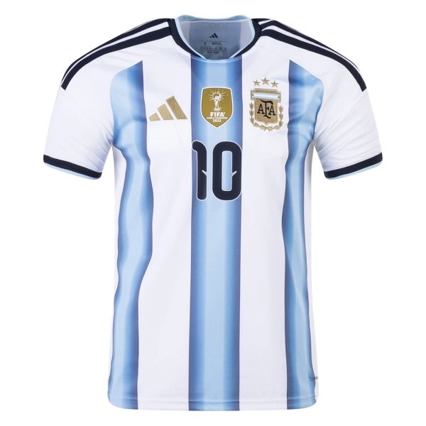 The Argentina 26 Home Messi Jersey is a tribute to the champions of the world. Celebrating Argentina's soccer DNA, this jersey is a nod to the iconic victories of '78, '86, and '22. It captures the essence of the team's journey to glory. This jersey is crafted with Climacool technology. Cool. Dry. Ready. Climacool wicks and disperses sweat for a cool, dry and distraction free performance. The wicking and quick-drying fabric manages sweat, keeping them dry and comfortable during every match. The bold 3-Stripes and seasonal collar add a touch of adidas heritage, making it a must-have for any young soccer enthusiast.