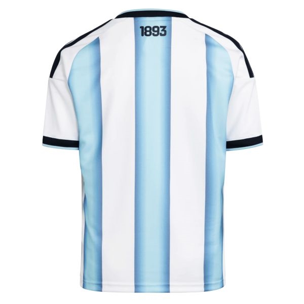 The Argentina 26 Home Messi jersey is a tribute to soccer's legacy and future triumphs. Made for young fans, it captures the pride of a nation and the enduring impact of Messi. Inspired by historic kits worn during Argentina's greatest victories, it blends heritage with bold intent. Designed with adidas Climacool breathable materials to aid cooling for optimal comfort. Bold 3-Stripes and a seasonal collar bring a modern edge, while the sewn-on team crest signals unwavering support. For young fans, it's more than a jersey. It is a symbol of dreams in motion.