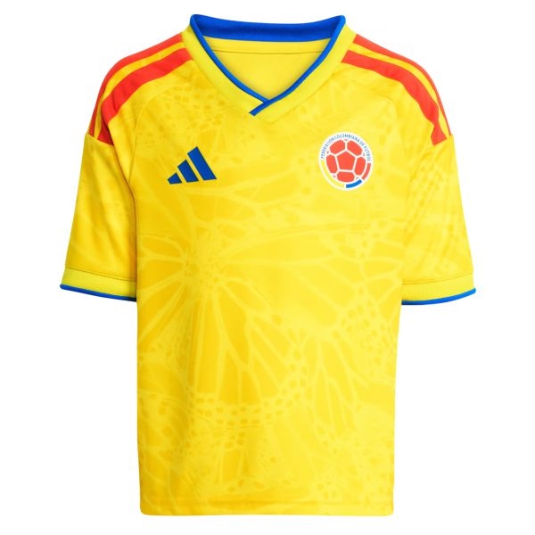 The Colombia 26 Home set brings expressive style to young fans with a design rooted in national identity. Graphic elements reflect movement, rhythm and Colombian energy—alive with color and meaning.