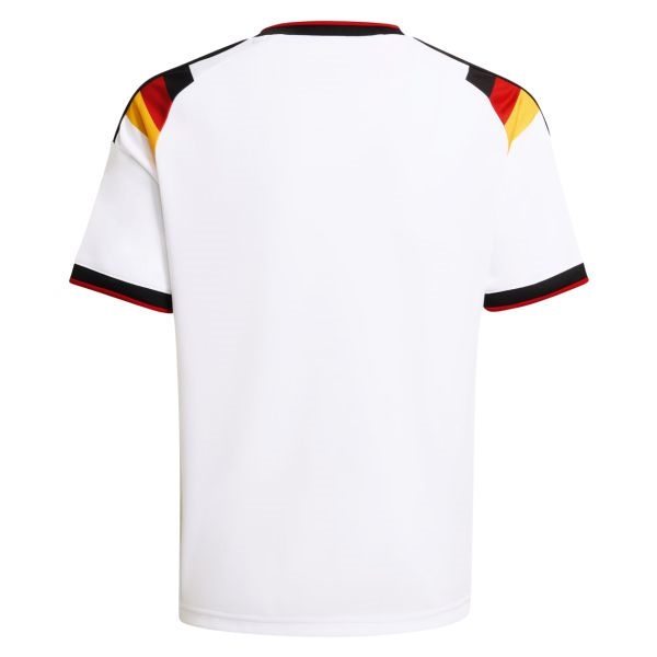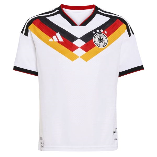 Our adidas Germany Youth Home Jersey 2026 is designed for young soccer enthusiasts who dream of emulating their heroes on the pitch. This jersey combines the essence of iconic moments with cutting-edge tech so they can stand out in both style and performance. Integrated Climacool fabric technology wicks and disperses sweat for a cool, dry and distraction-free performance while a regular fit offers freedom of movement, so they can feel focused and ready during intense matches.