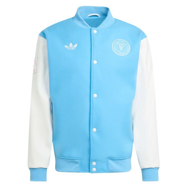 Our adidas Inter Miami CF Originals Anthem Jacket lets you show your Inter Miami CF pride when you're out and about. Displaying fresh colors based on the club's third kit, this adidas anthem jacket will keep you comfortable with soft single jersey and a baggy fit. An embroidered club badge on the chest and sign-offs on the sleeve and back announce your soccer fandom to everyone you meet.