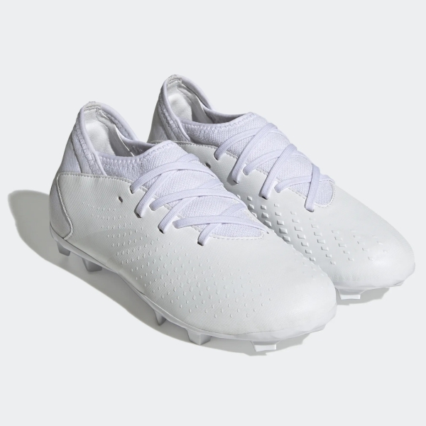 If you have a child playing outdoor soccer on a grass field, you will most certainly need a pair of firm ground soccer shoes. These are the most common type of soccer shoe. In fact, if you picture a soccer shoe in your mind, this is probably what you think of. These shoes are the classic soccer boot with either blade-shaped or round studs on the bottom. These studs are designed to provide traction and stability on an outdoor grass playing field. Typically, these studs are non-removable and made of plastic or rubber. Shoes designed for firm ground play are usually denoted by an FG in the shoe description.